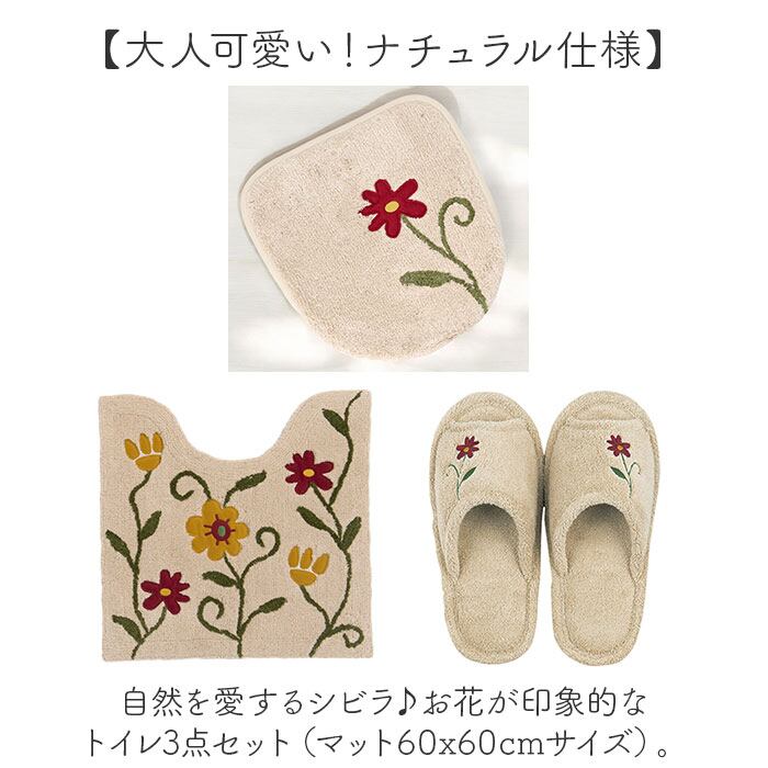 ・自然を愛するシビラ♪お花が印象的なトイレ3点セット(マット60x60cmサイズ)。