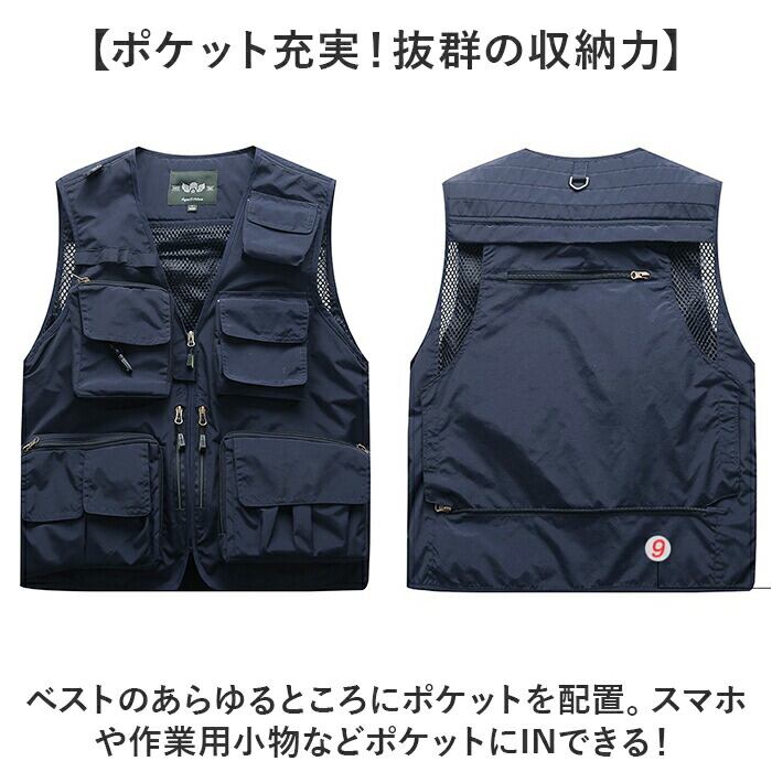 多機能メッシュベスト フィッシングベスト 釣り 速乾 通気