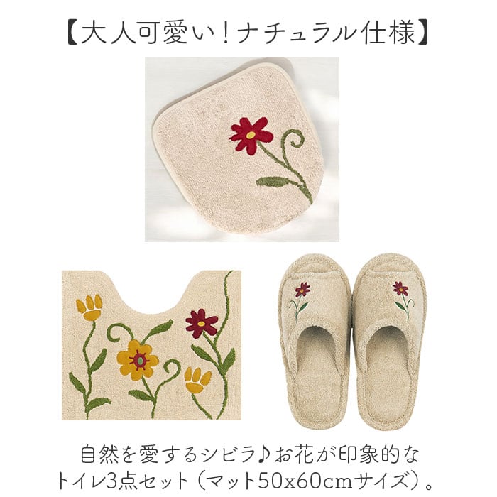 ・自然を愛するシビラ♪お花が印象的なトイレ3点セット(マット50x60cmサイズ)。