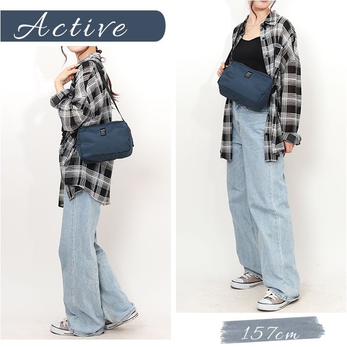 ・ショルダーの長さを調節して、肩掛けや斜め掛け。アクティブシーンでも快適。
