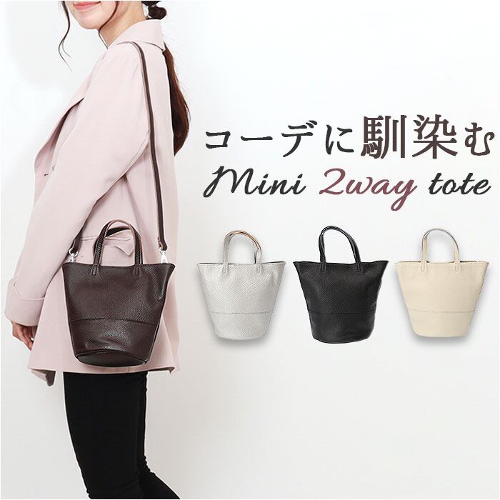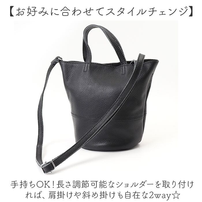 ・コンパクトで、おしゃれに持ち歩ける♪「シュリンクレザーバケツ型ミニ2wayトート」。