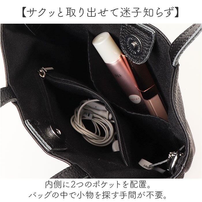 ・内側に2つのポケットを配置。バッグの中で小物を探す手間が不要。