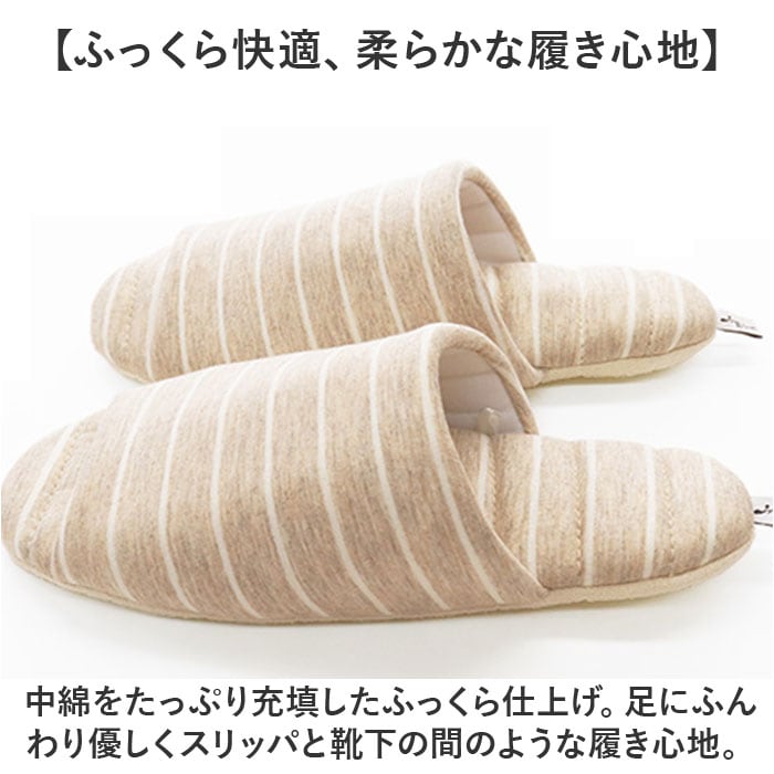 ・中綿をたっぷり充填したふっくら仕上げ。足にふんわり優しくスリッパと靴下の間のような履き心地。