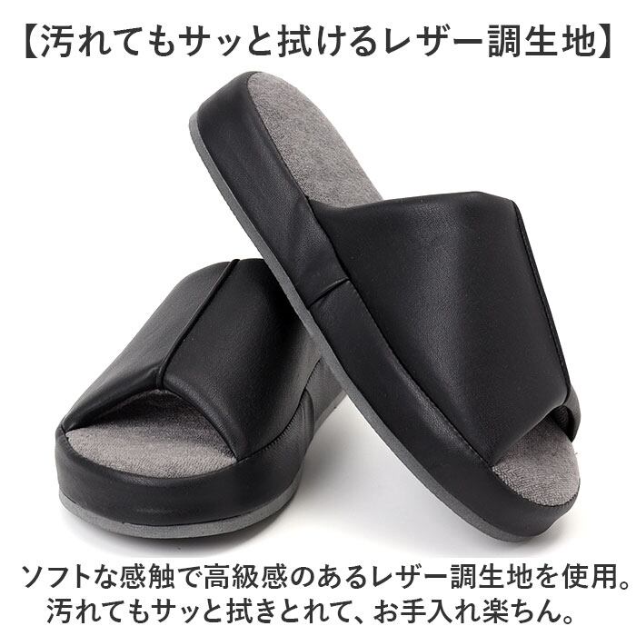 ・上品な印象のレザー調生地で、大人リッチに仕上げた「FAS PROJECT 厚底クッションスリッパ」