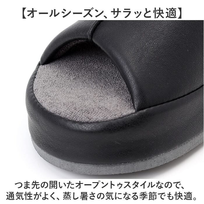 ・つま先の開いたオープントゥスタイルなので、通気性がよく、蒸し暑さの気になる季節でも快適。