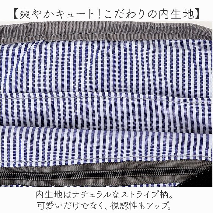 ・内生地はナチュラルなストライプ柄。可愛いだけでなく、視認性もアップ。