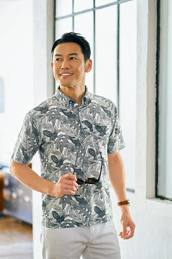 ・爽やかな総柄ポロシャツ2色と体にフィットする機能性コンプレッションインナーの3点セット。