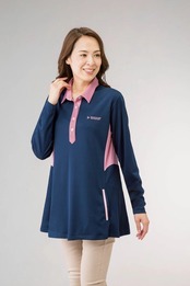 ・配色切り替えとゆったりAラインシルエットですっきり見え。