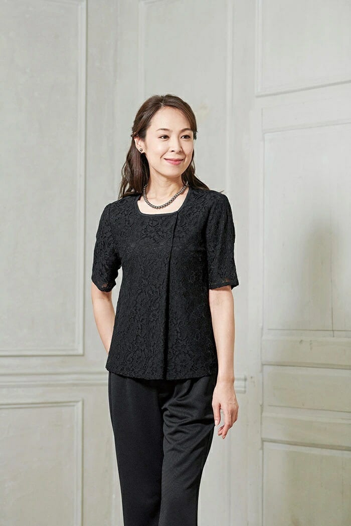【ブラウス】(本体)ポリエステル100%/(レース部分)ナイロン、レーヨン、再生繊維(セルロース)/裏地:(ブラウス)ポリエステル100%