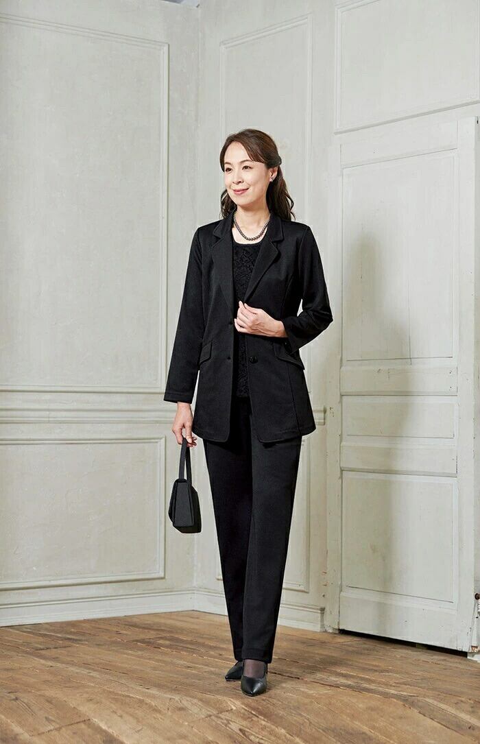 ・ベーシックタイプのロングジャケットスーツで体型カバーもしてくれる。