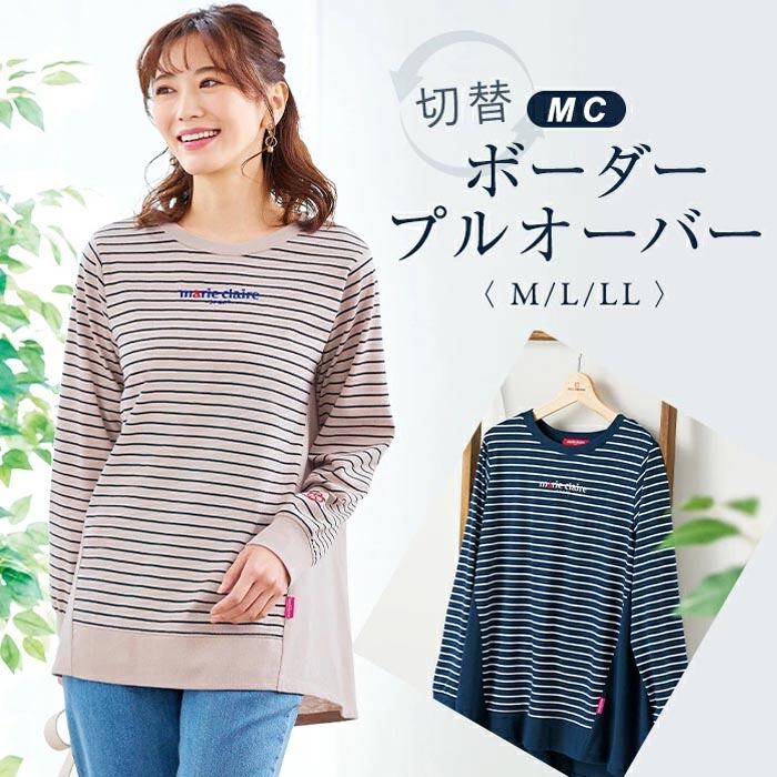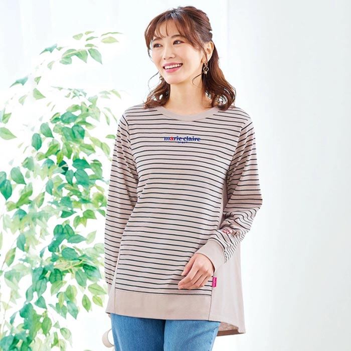 ・マリ・クレールらしい配色ボーダーと無地切替ですっきり細見え。