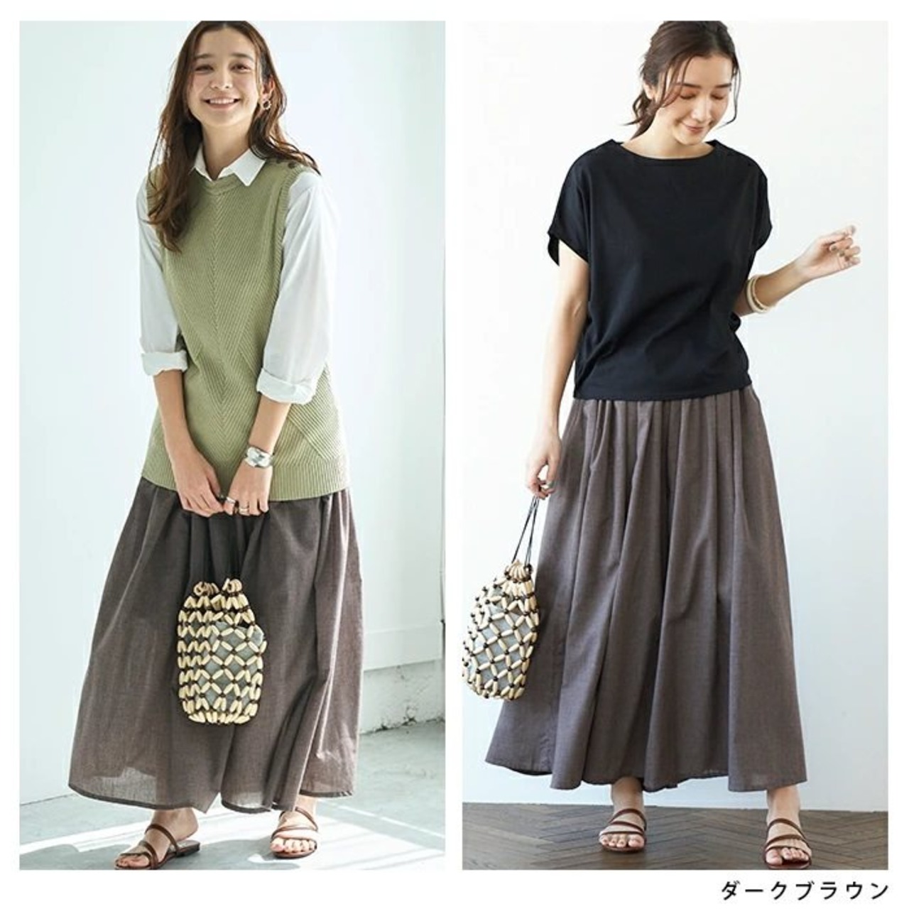 ・リネン風の透け感のある軽い素材で、動くたびにフンワリ。涼しげな印象を与えます。