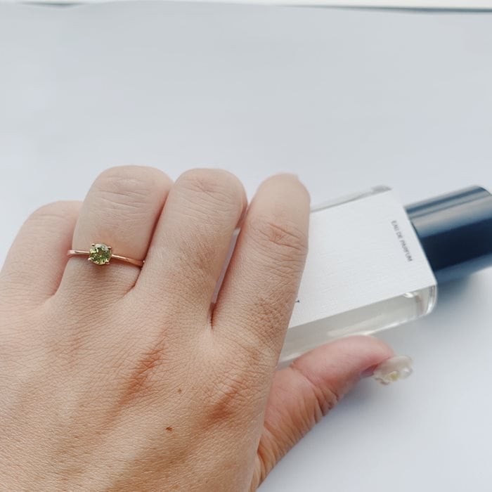 ・鮮やかなライトグリーンカラーのペリドットが輝くリング