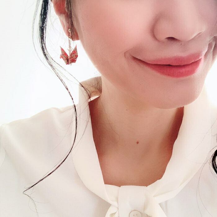 ・京都の手染め友禅和紙、有名クリスタルなど素材にもこだわったワンランク上のおりづるピアス。