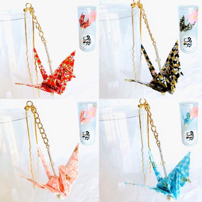 おりづるのかんざし 4色(赤・ピンク・水色・黒)