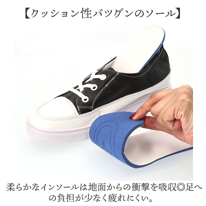 ・靴紐は結ばなくてもOKの作り。結び直しの手間がなく、伸縮性のあるゴムで足にフィット。
