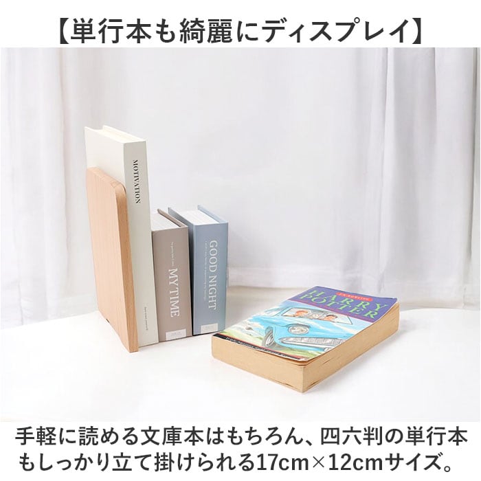 ・手軽に読める文庫本はもちろん、四六判の単行本もしっかり立て掛けられる17cm×12cmサイズ。