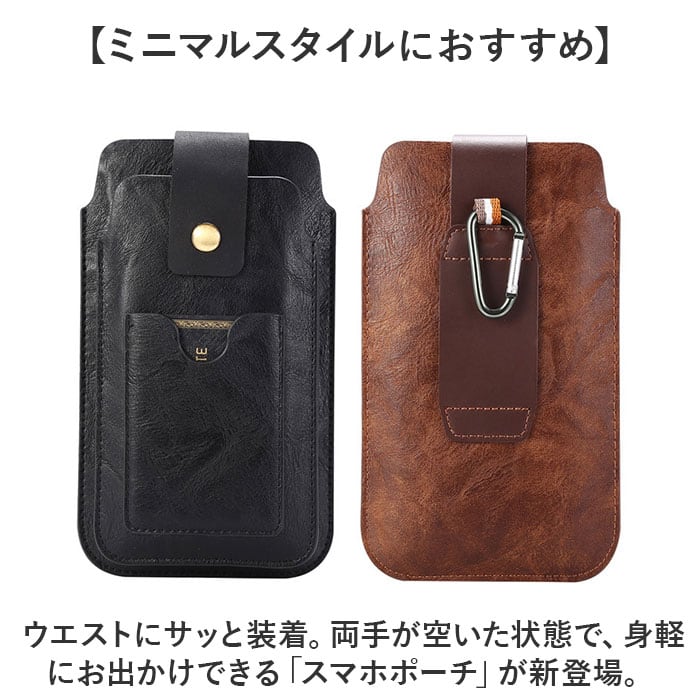スマホポーチ 縦型 ベルト 通販 スマホケース 腰 スマホ ベルトポーチ メンズ スマホ入れ 携帯ケース 携帯入れ スマホウエストポーチ ポーチ ポシェット ベルト通し ベルトにつける カラビナ付き レディース おしゃれ シンプル PUレザー ランニング 散歩