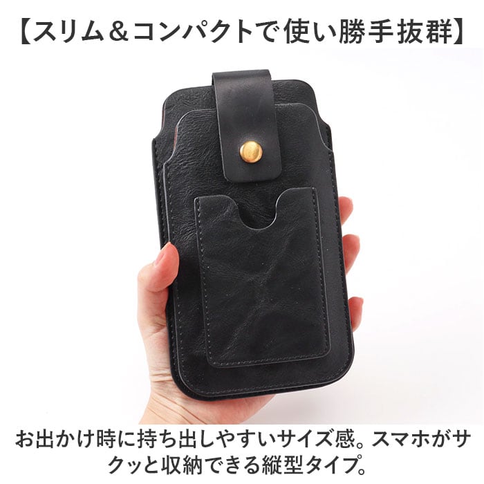 ・お出かけ時に持ち出しやすいサイズ感。スマホがサクッと収納できる縦型タイプ。