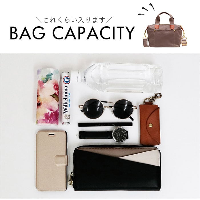 ・たっぷりマチもあって500mlペットボトル、お弁当箱がすっぽり入る見た目以上の収納力。