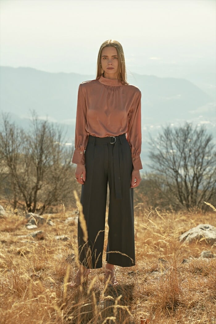 ・ヒップから真っ直ぐに落としたラインが美しいワイドパンツ。