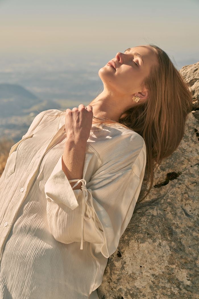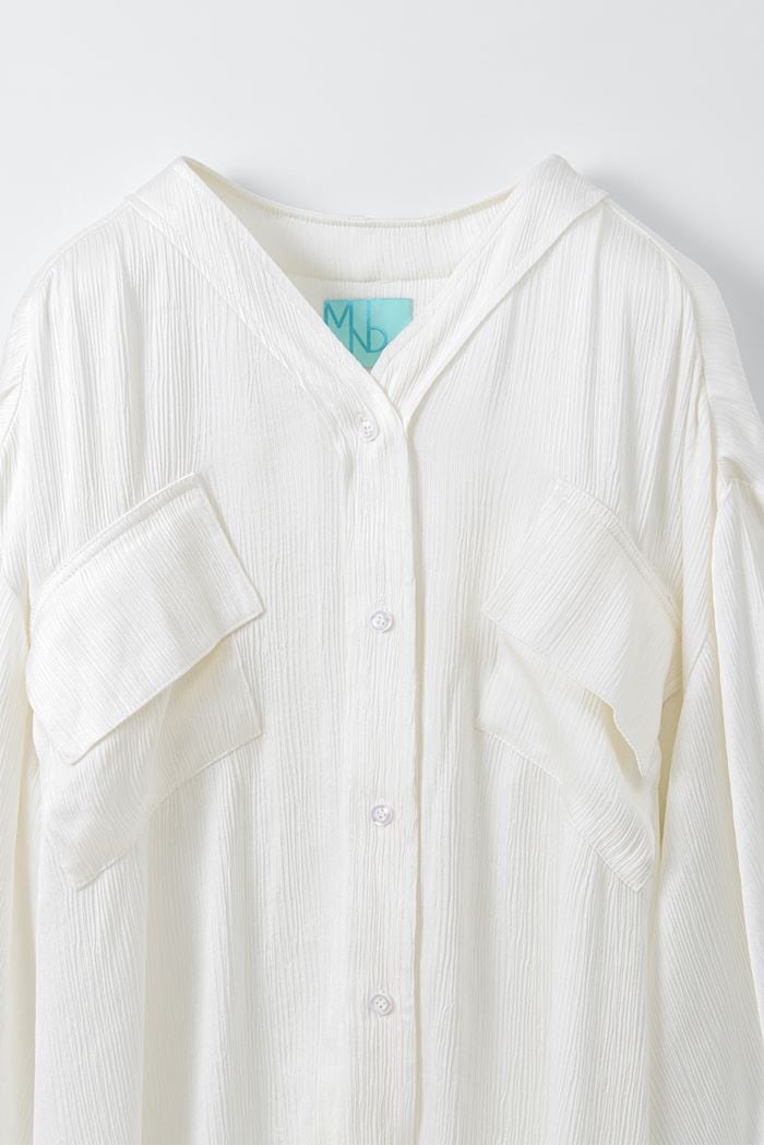・デコルテを美しく演出しながら胸元を出しすぎないカッティングのブラウス。