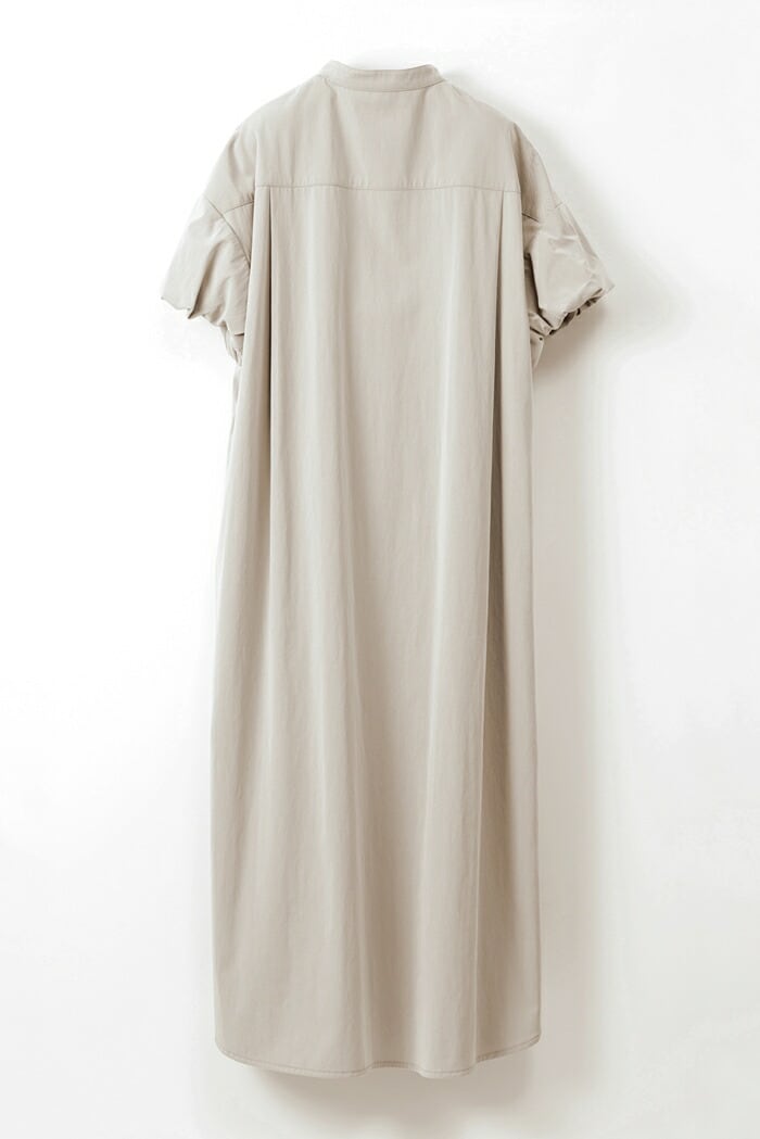 ・マチュアな印象のワンピース。バルーンスリーブでフェミニンな印象をプラス。