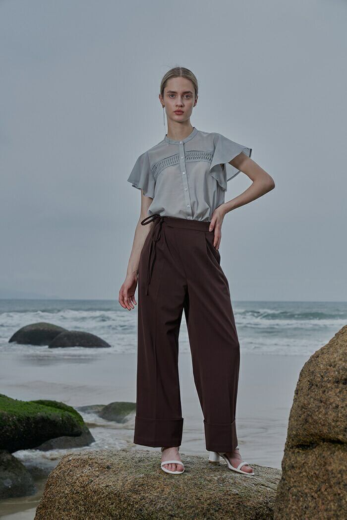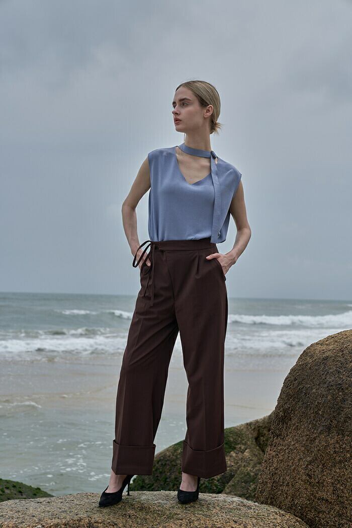 ・お腹周りにアクセントをプラス出来る紐付きで、スタイルアップ効果に期待が出来るセンタープレス入り。