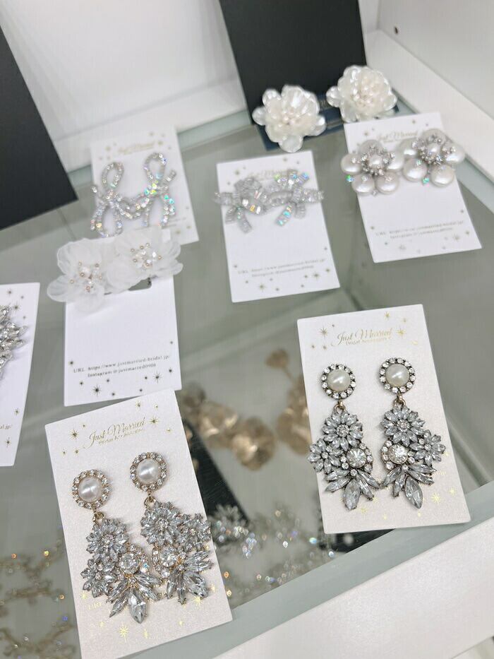 ブライダル イヤリング 花 通販 ブライダルアクセサリー ウェディングアクセサリー 大ぶり 花モチーフ 花型 揺れない 結婚式 花嫁 新婦 披露宴 パーティー 二次会 2次会 前撮り ウェディングドレス clearフラワー E-67 EARRING
