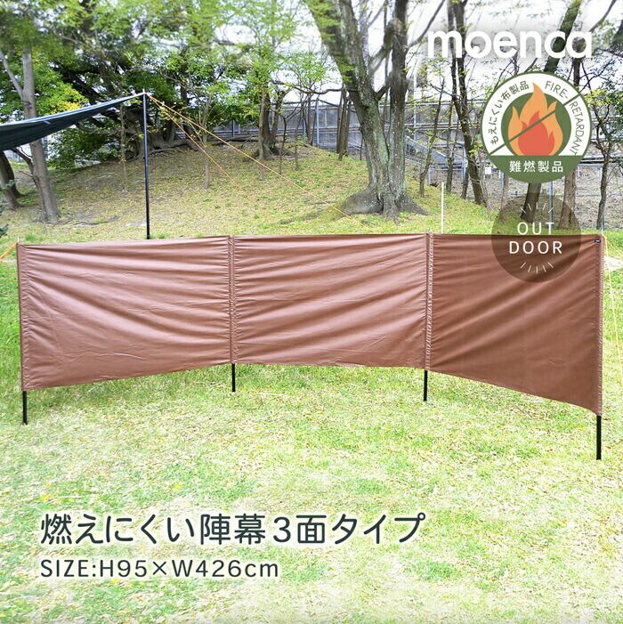 陣幕 キャンプ 通販 日本製 タープ サイドタープ 3面 95×426 風除け 風よけ 間仕切り 目かくし 目隠し 風防 幕 tsjm04 moenca モエンカ 尾張防炎屋 アウトドア 焚火 焚き火 レジャー 燃えにくい 難燃 防炎製品