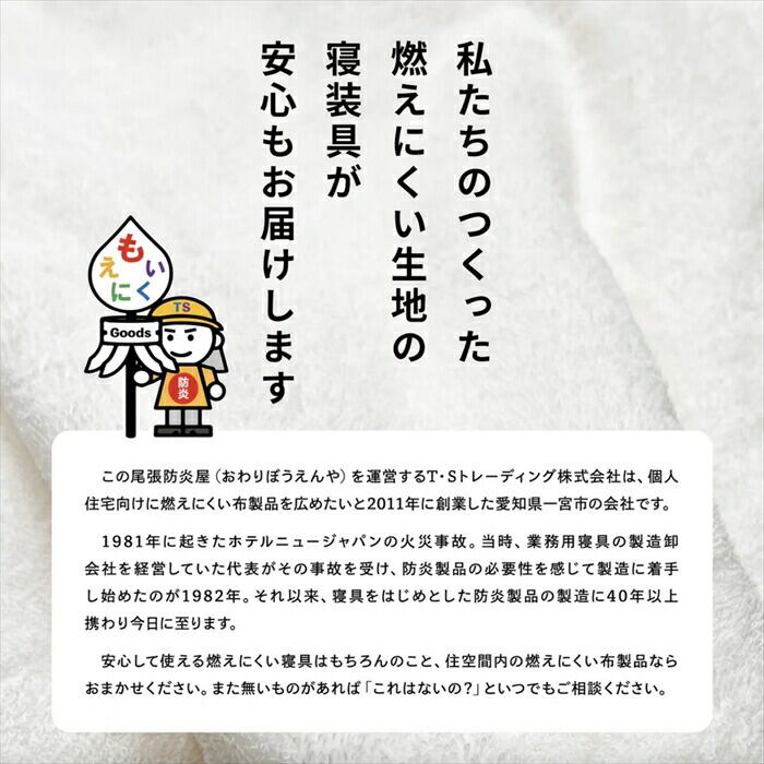 ・タオルのパイル部分に難燃紡績糸を使用している、このタオルケットは尾張防炎屋のオリジナル製品です。