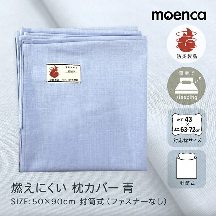 枕カバー 50×90 ピロケース 通販 まくらカバー ピローケース マクラカバー 50×90cm 50 90 ピローカバー 封筒式 ts5090225bu 尾張防炎屋 moenca モエンカ 防炎 燃えにくい 洗濯 枕 カバー 寝室 寝具カバー 防炎製品 防炎品