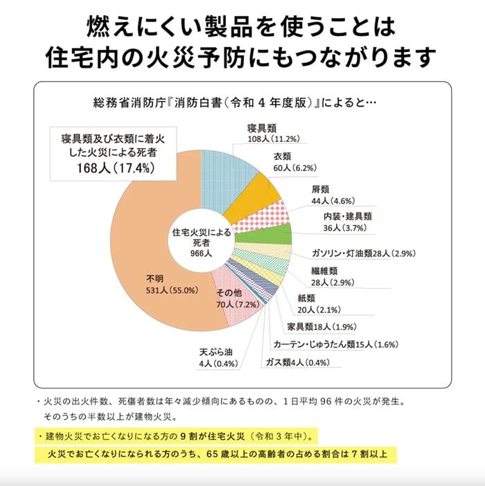 ・この『燃えにくいタオルケット』は夏の時期におすすめの寝具で、万が一火が移った場合でも生地の自己消火性により自然に鎮火しやすいので安心です。