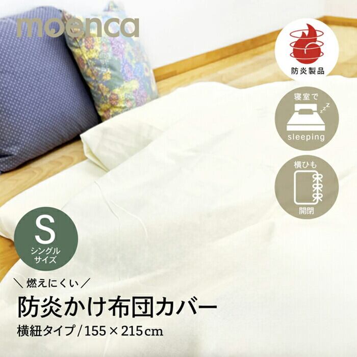掛け布団カバー シングル 通販 155×215 紐タイプ ファスナーなし 掛布団カバー かけ布団カバー 掛ふとんカバー かけふとんカバー TSCFC02 moenca モエンカ 尾張防炎屋 シングル用 寝具カバー 寝室 シーツ 燃えにくい 防炎製品