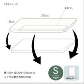 ・シングル敷布団用のフィットシーツで、裏面のゴム口を広げて布団の角に合わせてかぶせていき、すっぽりと裏まで覆います。カバーし終えたらシワ等整えてお使いください。