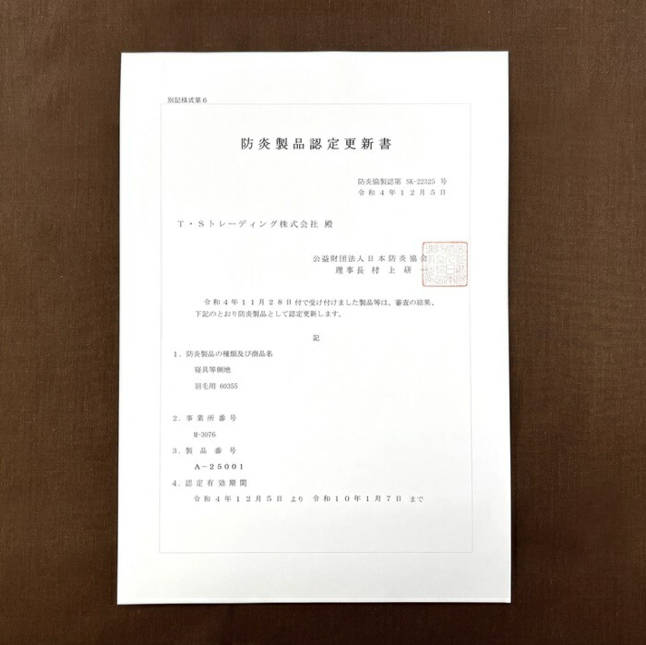 ・素材難燃の布で作った製品は薬剤を使用しないので人体(皮膚)へのリスクが少なく、安心してお使いいただけます。
