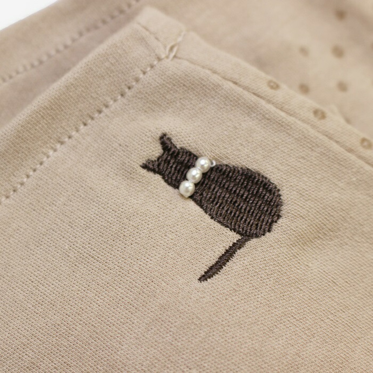 ・パールが付いた『ねこ』シルエット刺繍がポイント。