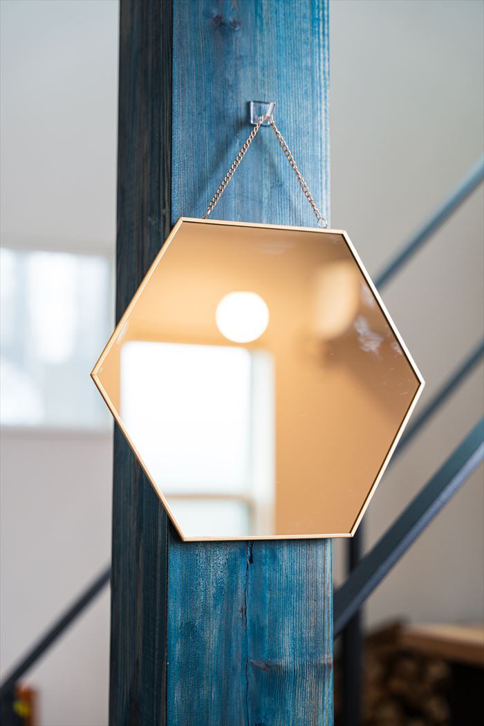 ・お部屋になじみやすいのにポイントになる六角形のオシャレなミラー。