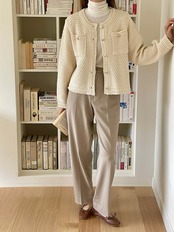 ・フォーマルシーンでもカジュアルシーンでも着回せる、ツイードニット素材のカーディガン。