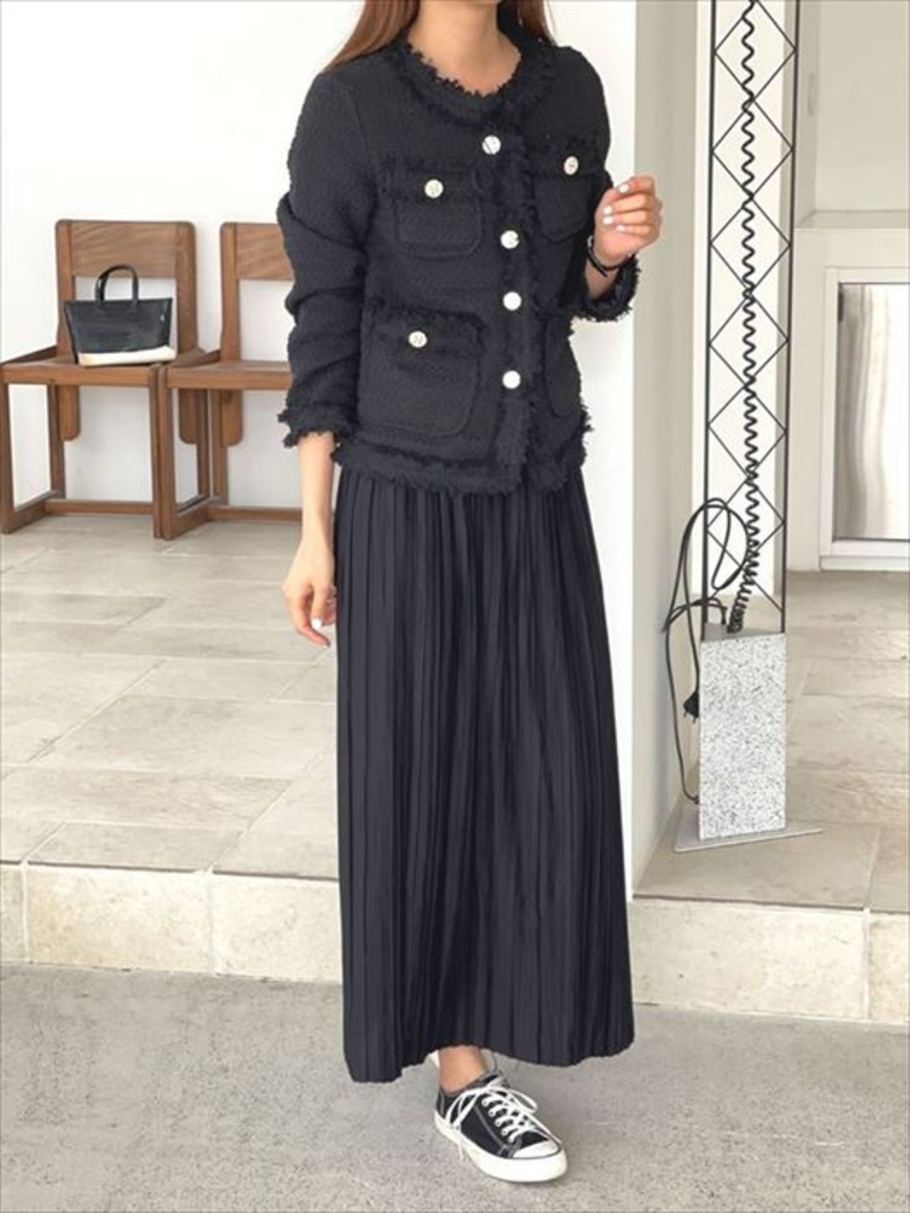 ・揺れ動く生地がラグジュアリーなロングプリーツスカート。