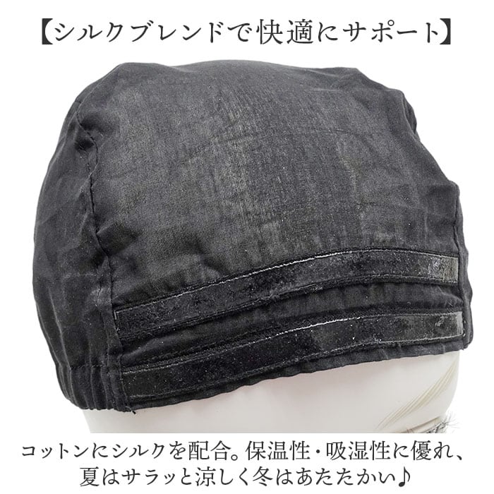 ・自毛がすっきりまとまり、付け心地も抜群!「プリシラ コットンシルク インナーキャップ」。