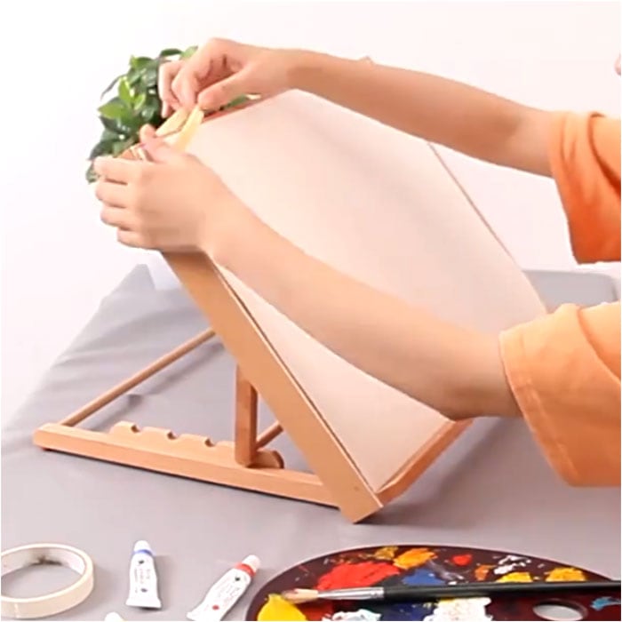 ・ゴムでキャンバスを固定。手の支え不要、片手にパレットを持ちながら筆を走らせることが可能。