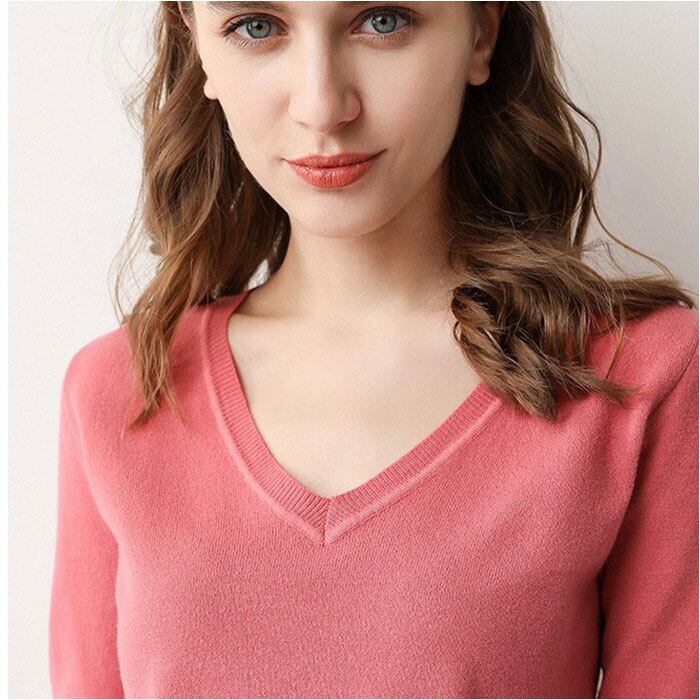 ・美デコルテを演出する、深めのVネック。「ニット Vネック 薄手」が登場。