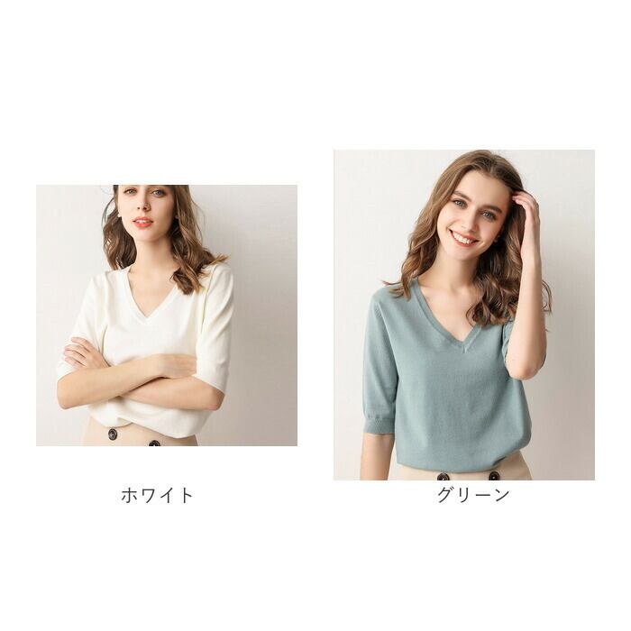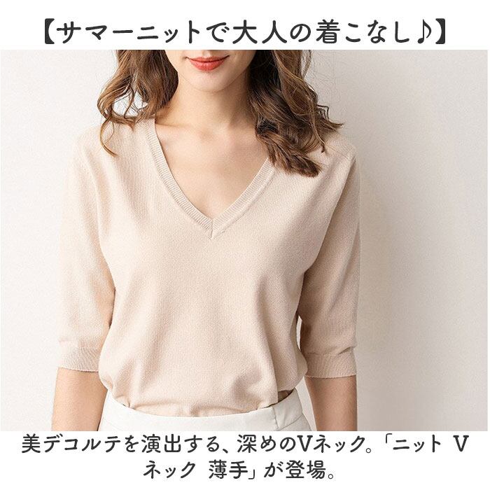 ニットセーター 半袖 通販 サマーニット Vネック 軽い 薄手 柔らかい セーター レディース 大人 女性 トップス ニットトップス カジュアル シンプル おしゃれ ニット かわいい 可愛い お出掛け ドロップショルダー オフィス スタイリッシュ
