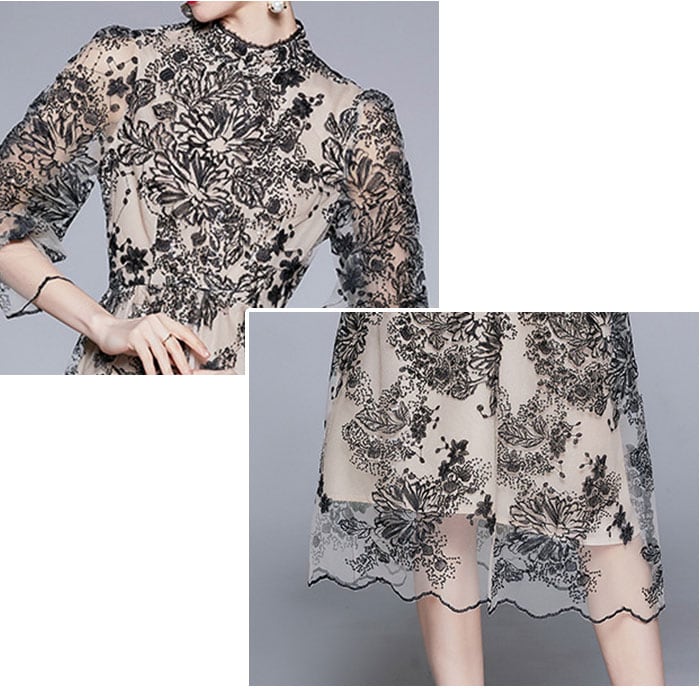 ・首元まで詰まった露出少なめのデザインが大人っぽい。上品でクラシカルに仕上がる♪