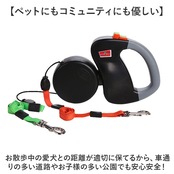 ・ぐーんと伸びるリードで、お散歩がのびのび快適。「ドッグ用自動巻取りリード(2頭引きタイプ)」