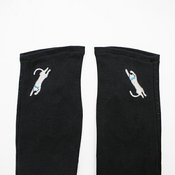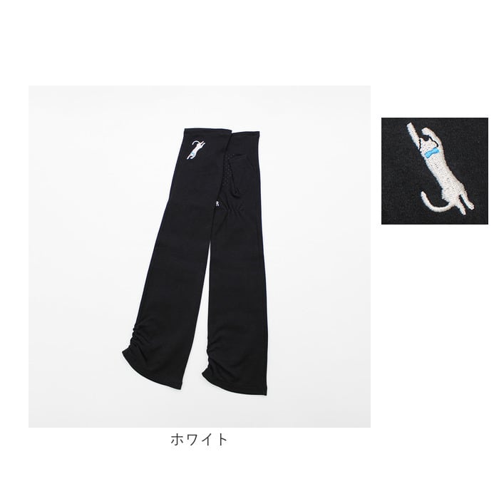 ・お昼寝中のねこの刺繍がかわいい、全長約50cmのフィンガーレスタイプのグローブ。
