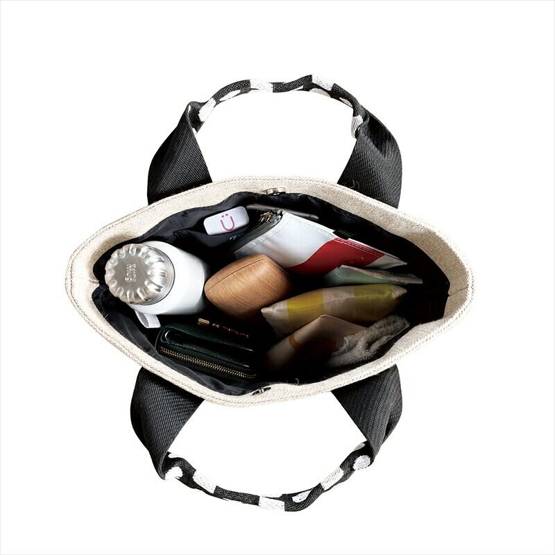 ・手持ち、腕掛けにちょうどよいサイズ感。縦長で、ボトルも立てて持ち運べます。見た目以上の収納力です。