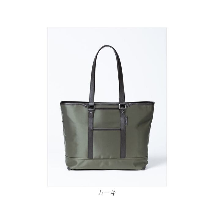 ・鮮やかで上品な光沢があるナイロン、附属にサフィアーノ調型押し牛革を使用したトートバッグです。