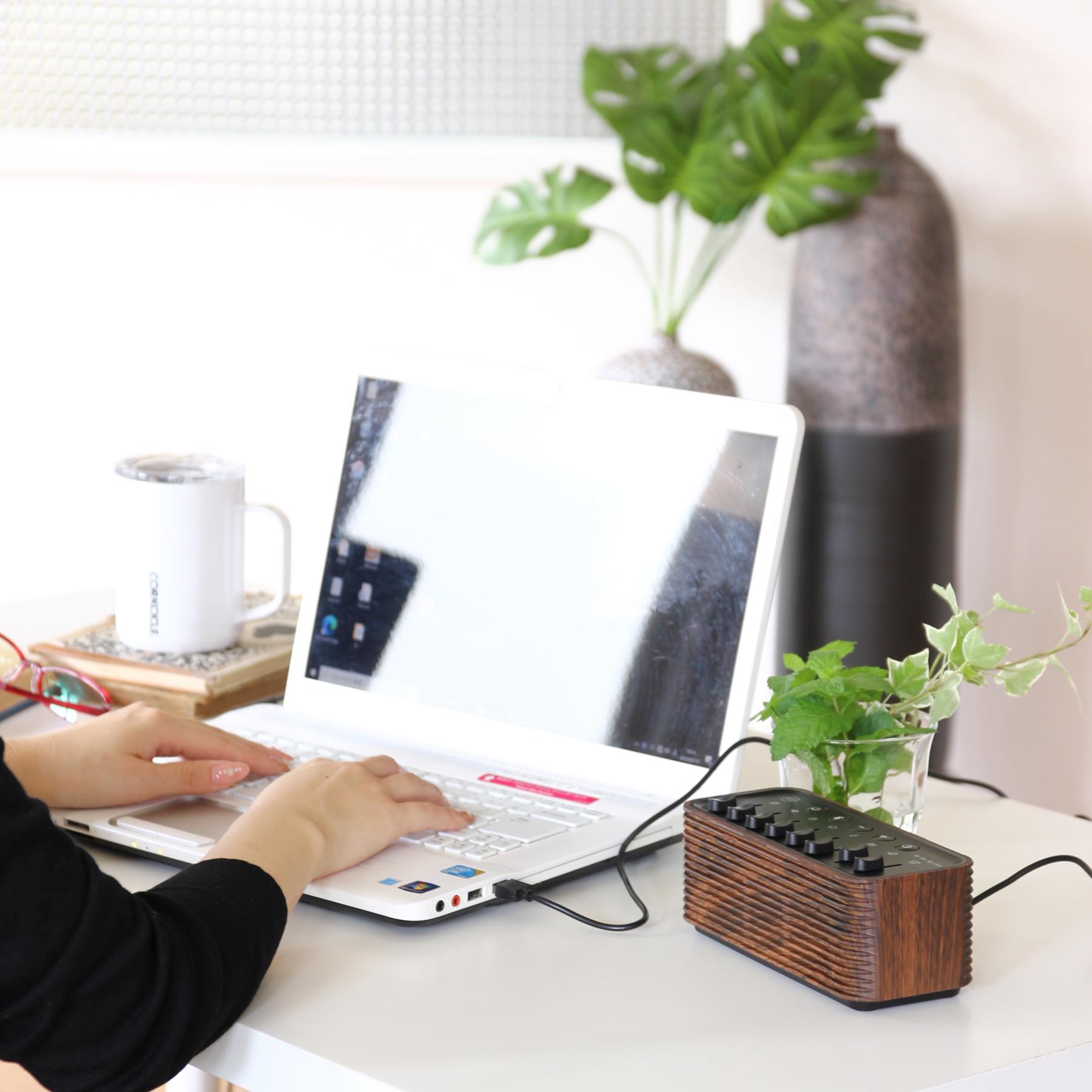 ・使い方は簡単、付属のUSBケーブル(Type-C)を使い給電、電源をONにする、聴きたい音の音量を調整するだけでお好みの環境音を実現できる。